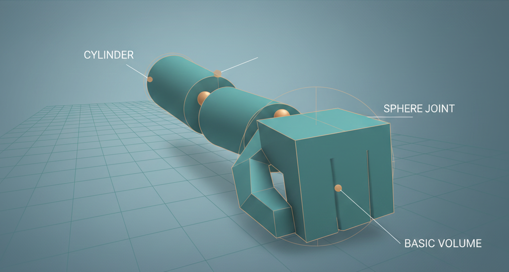 For instance, an arm is simply two cylinders connected at a joint. This simple approach helps you see the basic form clearly.