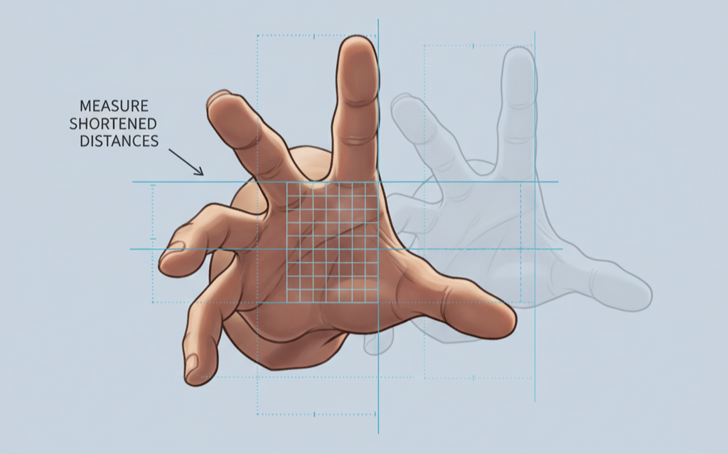 Finally, you must accurately measure the visual compression. It is often challenging to draw a short shape when you know the object is long. You must focus on measuring the shortened distance between key points. For an arm, measure the short space between the shoulder and the elbow. For a box, measure the compressed distance of the receding side.